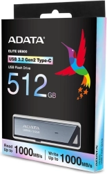 Unitatea flash ADATA Elite UE800, compactă și elegantă, cu capacitate de 512 GB, oferă transferuri rapide prin USB 3.2 Gen 2, viteze de până la 1000 MB/s și un conector USB‑C reversibil pentru compatibilitate excelentă. Datorită orificiului practic pentru șnur, o poți prinde ușor de chei sau de geantă și ai datele mereu la îndemână.