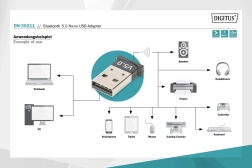 Cu adaptorul Bluetooth de la compania DIGITUS, puteți utiliza standardul high-speed Bluetooth 5.0, care permite transmiterea rapidă și de calitate a datelor, fotografiilor sau muzicii. Dispozitivul este compatibil cu dispozitivele mobile, poate conecta două calculatoare și poate conecta diverse accesorii precum controlere, căști, boxe, tastaturi, șoareci, imprimante, tablete sau smartphone-uri. Adaptorul suportă modul dual, funcții LAN și porturi seriale (SPP). Acoperirea Bluetooth este de 10 până la 20 metri în funcție de condiții. Datorită funcției BLE, consumul de energie este adaptat nevoilor actuale.