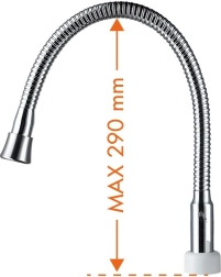 În pachet sunt incluse două tipuri de guri de scurgere – fixă pentru un jet stabil și flexibilă pentru direcționarea precisă a fluxului de apă. Controlul simplu permite atingerea rapidă a temperaturii de până la 60 °C, fiind potrivit pentru spălarea vaselor, curățenie și igiena de zi cu zi.
