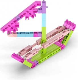 Asamblează un elicopter, o barcă, un leagăn, o girafă, un snowmobil și multe altele. Piesele variabile cu îmbinări prin clic solide stimulează imaginația și răbdarea.