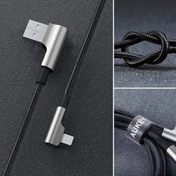 AUKEY CB-AL01 Negru OEM cablu din nylon cu unghi de 90° ultra rapid Quick Charge USB - Lightning Apple 2 m
