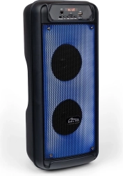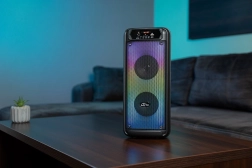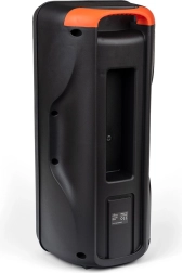 Designul gândit conține un panou frontal cu butoane de control, porturi pentru diferite conexiuni și un mâner practic pentru transport ușor. Pachetul include și un cablu de încărcare și un cablu AUX.