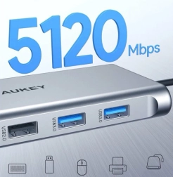 Extinde conectivitatea laptopului cu un singur cablu. Acest hub 10‑în‑1 din aluminiu de la AUKEY oferă o gamă universală de porturi pentru monitoare, rețea, stocare și alimentare. Transferă date cu viteze de până la 5 Gb/s, transmite video 4K și alimentează dispozitive prin USB‑C PD 100 W – simultan și fără compromisuri.