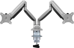 Brațul dublu pentru monitoare îți permite să ajustezi înălțimea, înclinarea și rotirea ambelor ecrane pentru a obține unghiul de vizualizare ideal. Construcția robustă asigură stabilitate, în timp ce clema de birou economisește prețiosul spațiu de pe blat.