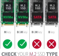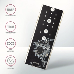 Carcasa este echipată cu șanțuri și suporturi termice care răcesc eficient SSD-ul M.2 inserat și astfel îi măresc durata de viață. De asemenea, carcasa protejează SSD-ul de pe laterale, cu protecție împotriva supraîncălzirii, reducând riscul de "Thermal Throttling".