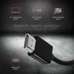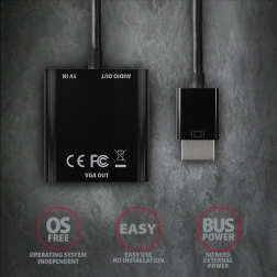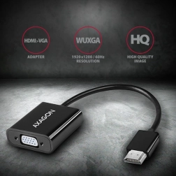 Acest adaptor activ permite transmiterea imaginii până la rezoluția 1920x1200 (WUXGA) cu frecvența de reîmprospătare de 60 Hz. Datorită designului inovator, oferă o imagine de înaltă calitate și claritate. Este unidirecțional – de la HDMI la VGA, nu pentru conversia inversă.