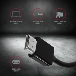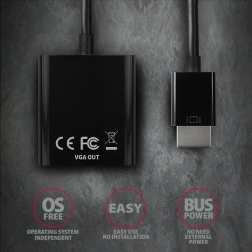 Adaptorul este alimentat direct din HDMI, astfel că nu are nevoie de alimentare externă. Datorită conversiei hardware funcționează fără drivere în orice sistem de operare și suportă modurile de duplicare și extindere a ecranului. Dimensiunile compacte și cablul fix de aproximativ 17 cm îl fac partenerul ideal atât în călătorii, cât și la birou.