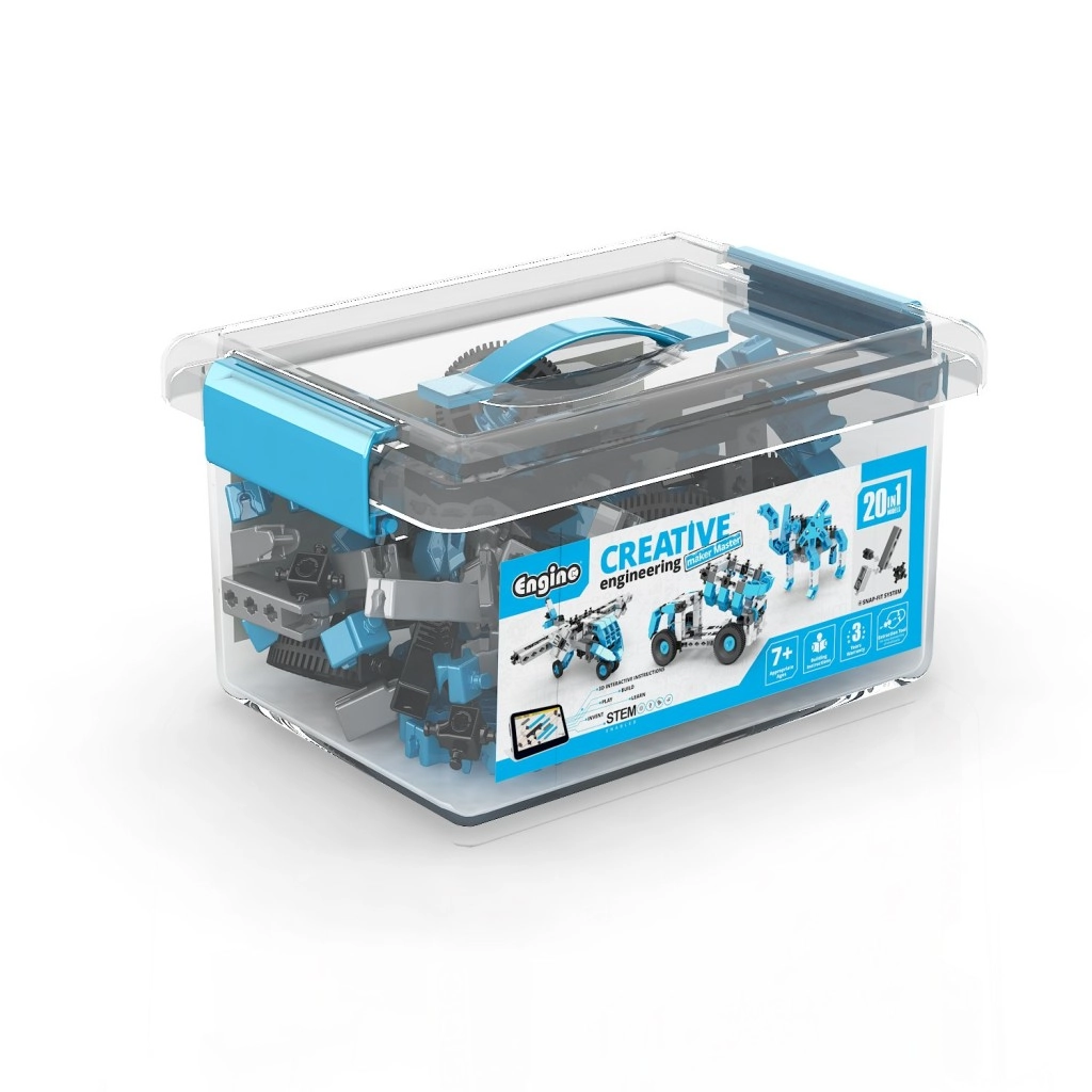 Descoperă setul de construcție versatil ENGINO cu până la 20 de modele într-unul singur, într-o cutie practică. Setul pentru copii de la 7 ani susține creativitatea, învățarea STEM și motricitatea fină. Piesele în culori albastru, alb, negru și gri se conectează ușor și pot fi reconfigurate de mai multe ori. Include aplicația interactivă kidCAD pentru vizualizare 3D, rotire și ajustare a modelelor. Depus într-o cutie transparentă cu capac și mâner pentru transport ușor și ordine.
