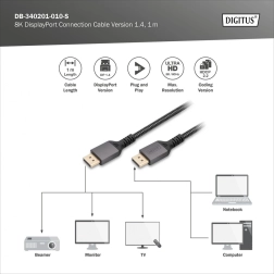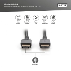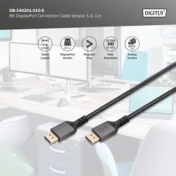Cablu premium DisplayPort pentru rezoluție UHD până la 8K la 60Hz, ideal pentru conectarea dispozitivelor precum calculatoare de birou, laptopuri și plăci grafice cu televizoare, monitoare și proiectoare care suportă DP.