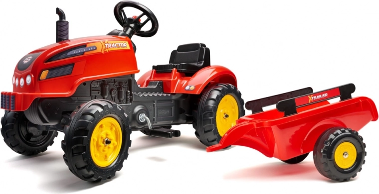 Cu acest tractor cu pedale FALK puteți transporta copiii într-o lume a aventurilor fermierului. Designul său realist și construcția durabilă asigură longevitate și un joc sigur. Remorca detașabilă extinde posibilitățile de joc, iar capota deschisă adaugă interactivitate globală.