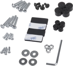 Șuruburi, șaibe, imbus și autocolante de protecție pentru o instalare rapidă și curată, fără a căuta accesorii suplimentare.