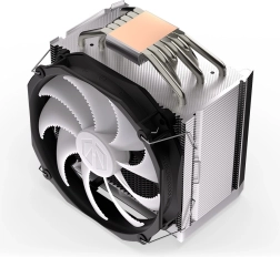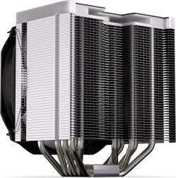 Șase heatpipe-uri masive și o bază prelucrată cu precizie disipă eficient căldura direct din procesor. Ventilatorul cu margini ondulate ale palelor reduce zgomotul psihoacustic și oferă un mod semi‑passive opțional pentru liniște absolută la sarcină redusă.