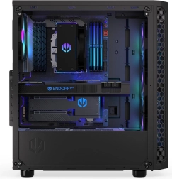Datorită organizării interne bine gândite, instalezi ușor plăci grafice lungi, soluții de răcire performante și mai multe unități de stocare. Controlerul ARGB integrat (cu splitter) îți permite să sincronizezi efectele luminoase cu alte produse Endorfy.