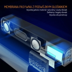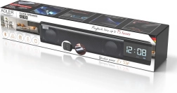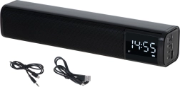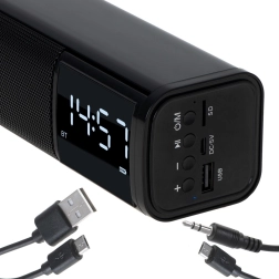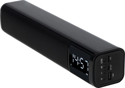 Cauți o soluție compactă pentru birou sau noptieră? Această boxă multifuncțională de tip soundbar oferă un sunet clar și echilibrat, un ceas LED ușor de citit și o alarmă practică. Redă muzică wireless prin Bluetooth 5.0 sau folosește redarea de pe USB și card SD. Pentru surse pe cablu este disponibilă intrarea AUX.
