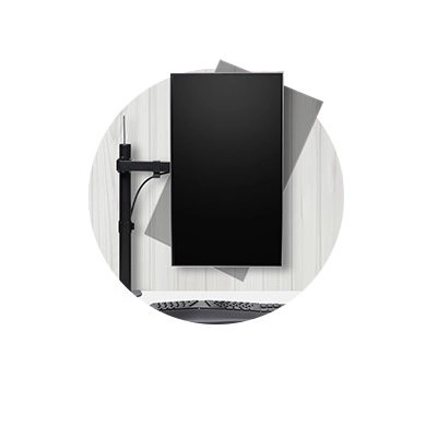 Brațul oferă rotire la 90°, înclinare la 45° și o gamă completă de mișcare de până la 399 mm pentru setarea optimă a ecranului.