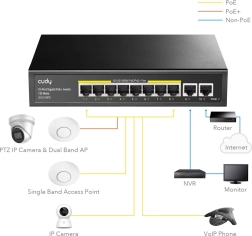 Comutatorul Cudy Gigabit PoE+ cu 10 porturi este conceput pentru o administrare eficientă și distribuirea traficului de date în rețea. Oferă: