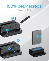 Cunoașteți stația de andocare care oferă înlocuirea facilă a discurilor datorită funcției Plug & Play, fără a fi necesare unelte. Economisiți timp și obțineți acces instantaneu la date. Datorită USB 3.2 Gen 2, beneficiați de viteze de transfer de date de până la 10 Gbit/s, permițând încărcări rapide și utilizare maximă a discurilor dumneavoastră.
