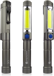 Datorită clipsului de prindere și magnetului din bază, aveți mâinile libere, iar butonul lateral albastru asigură o operare rapidă și sigură. Lanterna este ideală ca lumină de lucru, lampă de inspecție pentru auto, pentru camping și ca iluminat de urgență.