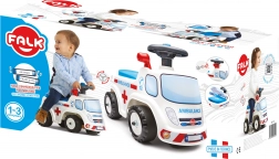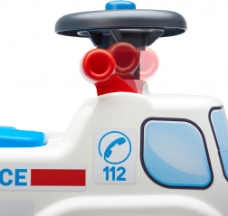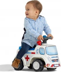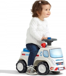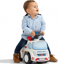 Mașinuța fără pedale cu aspect de ambulanță stimulează imaginația copiilor și dezvoltarea echilibrului. Datorită volanului cu claxon, copiii își îmbunătățesc coordonarea mișcărilor, iar roțile late și construcția stabilă oferă siguranță la primele plimbări.
