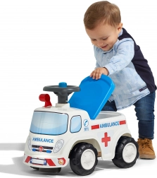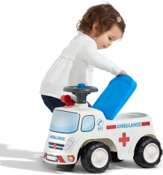 Compartimentul practic păstrează în siguranță micile comori și jucării. Astfel, copiii își pot lua tot ce au nevoie în călătorie cu propria lor ambulanță.