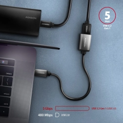 Soluție practică pentru laptopuri, telefoane, tablete sau power bank-uri cu USB-C. Adaptorul permite conectarea ușoară a hub-urilor USB, a discurilor externe sau a stick-urilor USB cu USB-A la noile dispozitive. Suportul USB 3.2 Gen 1 (SuperSpeed) oferă viteză de transfer de până la 5 Gb/s, iar în același timp puteți încărca dispozitivele cu până la 3 A.