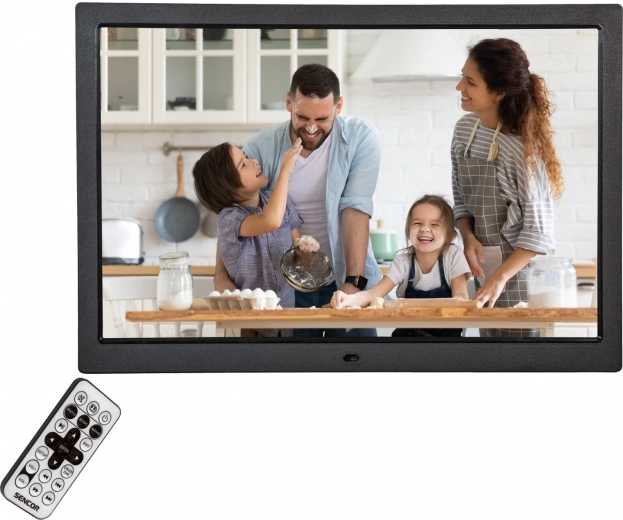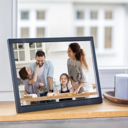Ramă foto digitală stilată și modernă de 15 inch, ideală pentru afișarea fotografiilor dumneavoastră preferate în calitate HD.