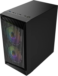 Panoul lateral din sticlă securizată îți pune în valoare componentele, în timp ce ventilatoarele ARGB oferă un aspect atractiv configurației. Iluminarea se schimbă prin butonul RESET.