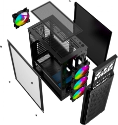Fornax 400X este un midi tower elegant, orientat spre un design curat și flux de aer eficient. Panoul frontal perforat cu filtru de praf și ventilatoarele ARGB preinstalate asigură o răcire excelentă și efecte luminoase atractive, ușor de sincronizat cu celelalte componente.