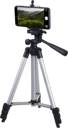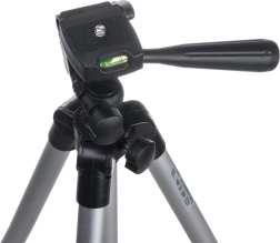 Trepiedul este echipat cu filet fotografic 1/4" pentru montarea rapidă a aparatului foto sau camerei. Este inclus și suportul cu arc pentru smartphone pentru telefoane cu lățimea aproximativ 5,5–8,5 cm. Capul rotativ cu manetă și nivelă cu bulă te ajută să aliniez exact orizontul și să obții cadre cu aspect profesionist.