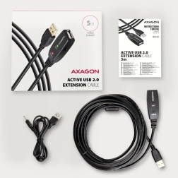 Cablu activ AXAGON ADR-205 este proiectat pentru o extindere USB ușoară și fiabilă. Datorită amplificatorului, este posibilă conectarea dispozitivelor pe distanțe mai mari decât cu cablurile pasive obișnuite. Asigură viteză mare de comunicare și interferente minime datorită ecranării de calitate a cablului.