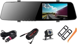 Pachetul include cameră spate, care ajută la parcare și în același timp înregistrează continuu ceea ce se întâmplă în spatele mașinii. G‑sensor blochează automat cadrele esențiale la coliziune, modul de parcare activează înregistrarea la impact sau vibrație, iar detecția mișcării pornește captarea imediat ce apare activitate în câmpul vizual. Microfonul integrat completează video-ul cu sunet curat.