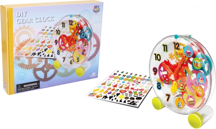 Ceasul asamblat funcționează pe baza unui mecanism mecanic, atât educativ, cât și distractiv. În pachet se găsesc autocolante decorative, datorită cărora îți poți ajusta designul după preferințe.