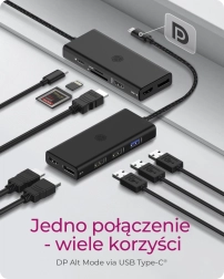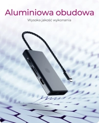 Design și performanță: Carcasa compactă din aluminiu oferă un aspect elegant și permite accesul facil la porturile de extindere esențiale, asigurând în același timp o disipare eficientă a căldurii. Extinde-ți orizonturile: Multitasking facil datorită posibilității de conectare a mai multor monitoare. Încărcarea dispozitivelor: Tehnologia de încărcare prin portul Type-C permite alimentarea laptopului conectat cu o putere de până la 100 wați. Partener de călătorie: Datorită designului compact, mica stație de andocare încape în orice buzunar. Aluminiul elegant asigură robustețe în timpul călătoriilor.