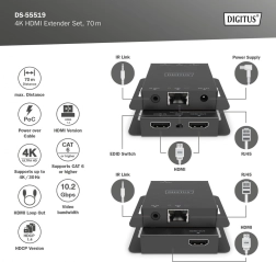 Permite extinderea semnalelor HDMI până la o distanță de 70 m cu suport pentru rezoluții de până la 4K.