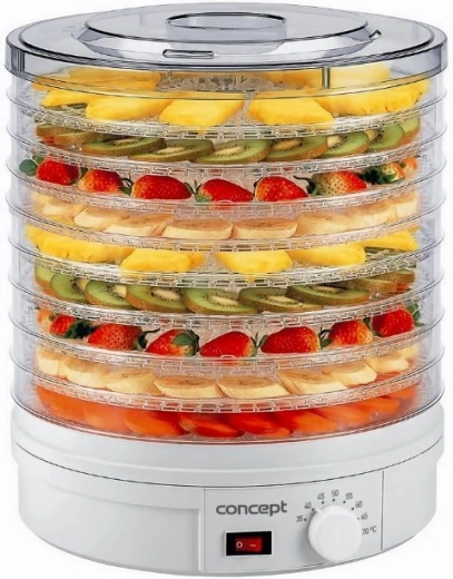 Vă prezentăm uscătorul de alimente Concept, ideal pentru oricine dorește să păstreze alimentele proaspete pentru o perioadă mai lungă. Uscarea este o metodă eficientă de a păstra valoarea nutritivă și gustul acestora. Acest uscător oferă: