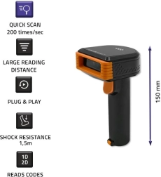Accelerați munca la casă, în depozit și la expediere. Cititorul Qoltec citește fiabil coduri 1D și 2D cu viteză de până la 200 scanări/s, permite scanare din unghiuri diferite și, datorită modului automat, pornește scanarea la apropierea de cod. Construcția durabilă din ABS rezistă la căderi de până la 1,5 m, fiind pregătită pentru utilizare intensă.