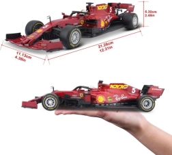 Acest model de Formula 1 atent lucrat surprinde aspectul iconic și detaliile precise ale mașinii reale Ferrari SF1000. De la elementele aerodinamice realiste până la replici exacte ale logourilor sponsorilor, micuța mașină trezește pasiunea pentru motorsport.
