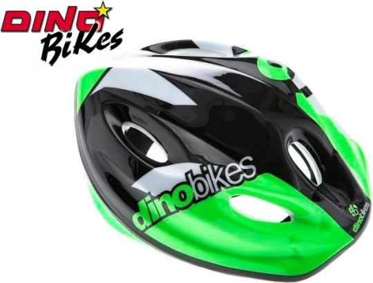 Cască de siguranță de la producătorul italian Dino Bikes, combinând culorile negru-alb-verde, este ideală pentru băieți. Oferă confort ridicat datorită dimensiunii reglabilă, 5 orificii de ventilație și căptușelii moi.