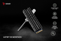 Radiatorul Savio AK-60 este proiectat pentru SSD-urile M.2 standard în format 2280 și disipă eficient căldura datorită construcției metalice masive cu aripioare. Asigură funcționarea stabilă a unității NVMe chiar și în sarcini solicitante precum gaming, lucru cu fișiere mari sau editare video.