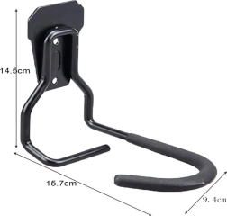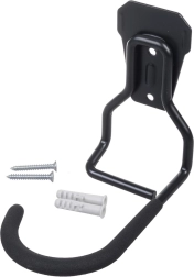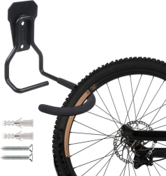 Pentru a agăța bicicleta, introduceți pur și simplu janta roții din față în cârligul suportului. Astfel, bicicleta este susținută împreună cu roata, reducându-se riscul de deteriorare a cadrului sau a altor părți ale bicicletei. Suportul asigură stabilitate și siguranță menținând bicicleta în poziție verticală. Cârligul este acoperit cu cauciuc, care protejează janta împotriva zgârieturilor.