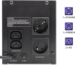 Acest sistem include reglare automată a tensiunii (AVR), care nu doar oferă alimentare stabilă și reduce uzura bateriei, ci mai ales îți protejează dispozitivele împotriva supratensiunii sau subtensiunii. Datorită așa-numitei porniri la rece poți porni rapid dispozitivul fără a fi conectat la rețea și, de exemplu, să salvezi rapid datele pe un dispozitiv USB. Desigur, sunt incluse protecțiile la suprasarcină și scurtcircuit.