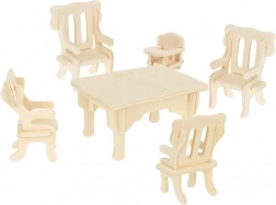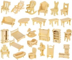 Acest set conține 34 de piese de mobilier din lemn, pe care le puteți asambla singuri pentru a crea un interior ideal pentru păpuși. Mobilierul este proiectat la o scară potrivită pentru diferite căsuțe pentru păpuși, iar datorită posibilității de a lucra cu lemnul, copiii își pot dezvolta creativitatea și creează combinații unice de culori după propriul gust.