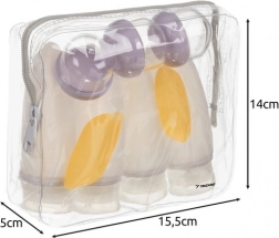 Acest set nu doar că adaugă stil călătoriilor tale, ci oferă și funcționalitate maximă, cu atenție la detalii, precum sticluțele elastice pentru dozarea ușoară a conținutului.