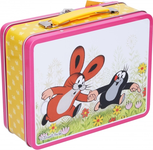 Această geantă drăgălașă de tablă este decorată cu imagini ale eroului preferat Krtek - pe o parte cu o cană și pe cealaltă cu un iepuraș. Este excelent pentru organizarea și depozitarea în siguranță a micilor obiecte ale copilului tău.