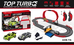 Pachetul include 2 mașinuțe de curse, 2 controlere și piese suplimentare pentru modificarea vizuală a mașinilor. Doar montezi pista, pornești și cursa începe!