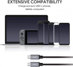 Cablu AUKEY USB‑C la USB‑C este o soluție fiabilă pentru încărcarea laptopurilor, tabletelor și telefoanelor. Datorită suportului USB Power Delivery până la 60 W, reîncarcă rapid și în siguranță, în timp ce construcția de calitate cu conectori placați cu aur și ecranare multistrat garantează transfer stabil de date chiar și în utilizarea zilnică.