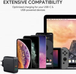 Încărcați rapid și eficient dispozitivele cu încărcătorul AUKEY PA-D3. Două porturi – USB-C Power Delivery și USB-A – acoperă totul, de la telefoane și căști până la dispozitive mai performante, inclusiv laptopuri și monitoare alimentate prin USB-C. Tehnologia Dynamic Detect alocă inteligent puterea: cu un singur dispozitiv conectat până la 60 W, iar cu două dispozitive optimizează distribuția (de ex. până la 45 W pentru portul principal), asigurând încărcare rapidă și sigură.