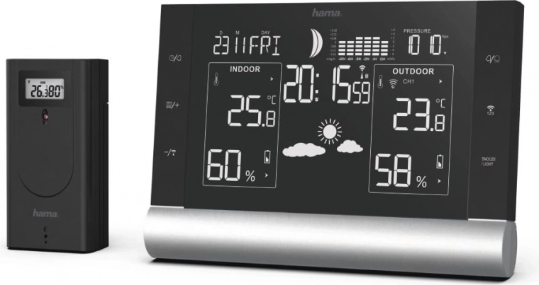 - Termometru și higrometru pentru afișarea temperaturii și umidității în interior și exterior.