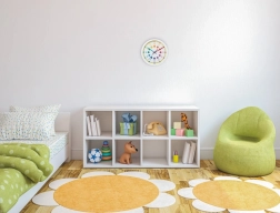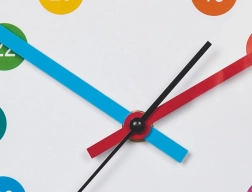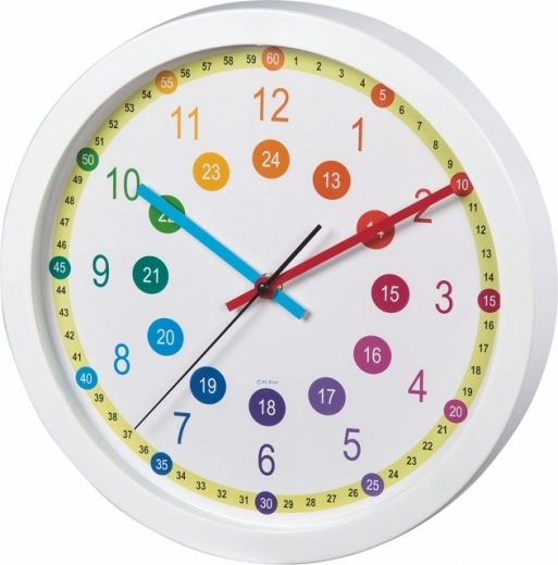 Datorită mecanismului cu cuarț silențios și limbii secundarului cu mers lin, ceasul nu ticăie și este potrivit și pentru dormitor. Designul curat, cu ramă albă, se potrivește în orice cameră de copii și oferă un aspect jucăuș, motivând la învățare.