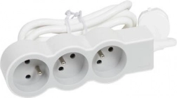 Cablu prelungitor cu trei prize, adaptat pentru conectarea diferitelor dispozitive electrice. Datorită lungimii de 1,5 metri, poate fi utilizat cu ușurință în spații mai largi. Fabricat din material plastic rezistent, asigurând durabilitate și izolație.
